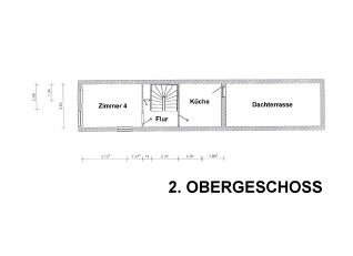 In dem Haus - mit ca. 150 qm Wohnfläche - befinden sich 4 Zimmer, eine neuwertige Küche mit allen erforderlichen Geräten inkl. Zugang zur großen Dachterrasse, 1 Vollbad mit Wanne und ein Duschbad mit WC.