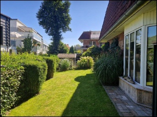Extras: Kamin, Fussbodenerwärmung im Wohnzimmer, Essplatz und Bad, Designer-Einbauküche mit allen erforderl. Elektrischen-Geräten, Rollläden an allen Fenstern zur Terrassenseite, Markise, 2. Terrasse, neuw. isoliertes Studio, Carport, 1 zusätzl. PKW-Stellplatz, Schuppen für Gartengeräte, Schuppen für Mülltonnen, Heizkörper im Keller, u.v.m.